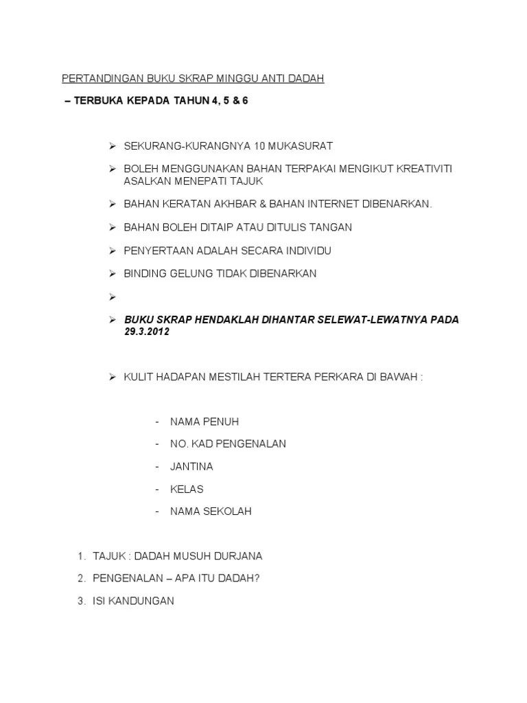 Format penyediaan buku skrap buku skrap yang disediakan hendaklah mengikut format seperti. Senarai kandungan bil tajuk m/s 1. Muhammad aqel qhalish bin muhammad ridzwal tahun:
